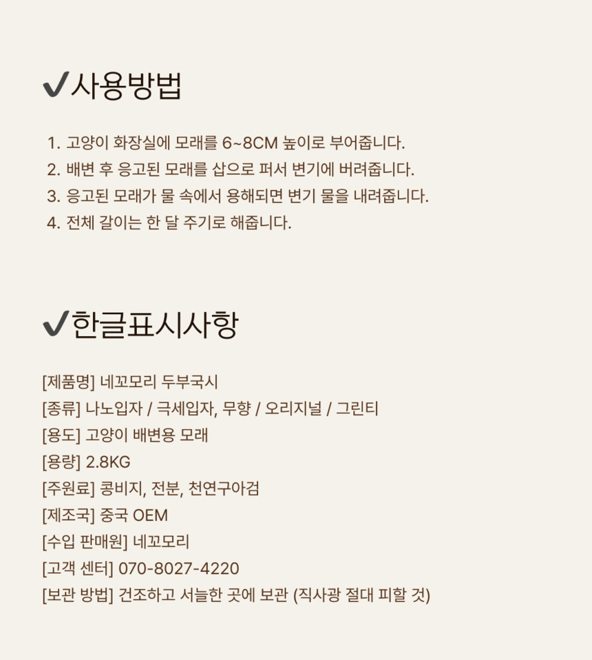 네꼬모리 두부국시 극세입자 무향 2.8kg