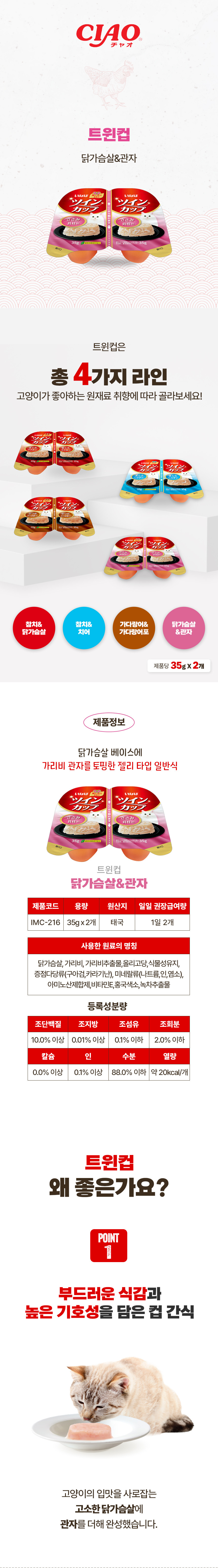 이나바 트윈컵 닭가슴살&조개관자 70g / 1개