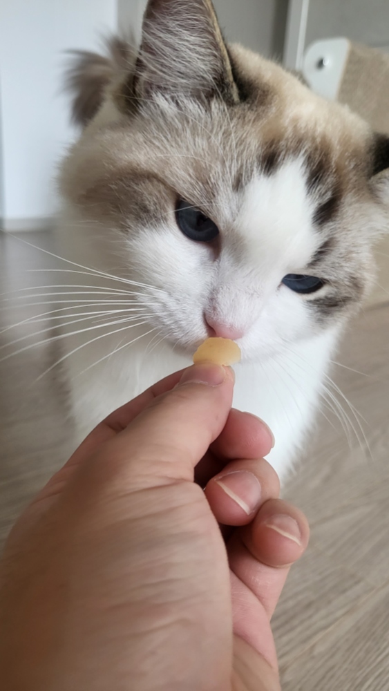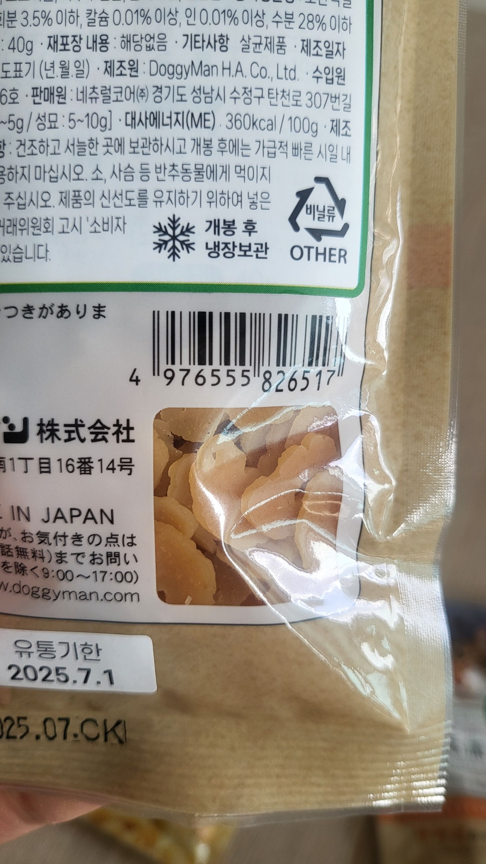 발색제, 착색제, 산화방지제 등 안좋은 성분들은 첨가되어 있지 않아 안심하고 급여할 수 있었고, 사이즈가 작아 깔끔하게 급여할 수 있어 좋았습니다.